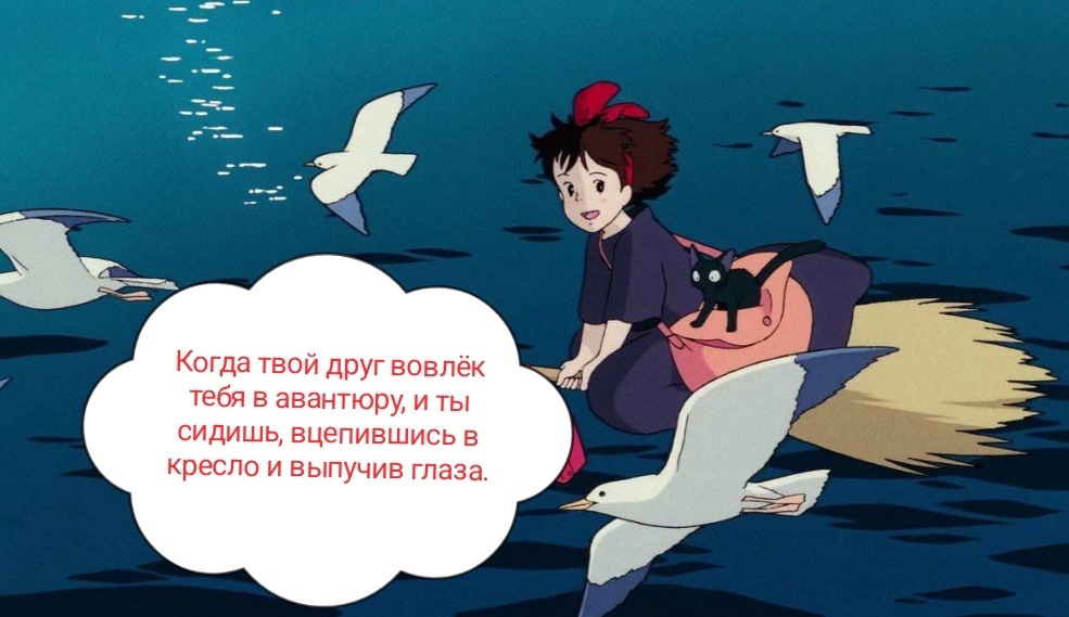 Я же вижу ход с потерей способности слышать человеческий голос Зизи со стороны Кики так: он одновременно был и метафорой её детской невинности, и тем, кто давал ей поддержку и уверенности в своих силах априори. Дети часто до поры до времени действуют на свой страх и риск, потому что не осознают опасности или знают, что родители (все, кто старше и отвечает за них) придут на помощь. После того, как мы теряем эту первоначальную уверенность, нам надо обрести собственную, более осознанную и в какой-то степени искусственную уверенность в своих способностях. Полагаю, что-то подобное пытался показать Хайяо Миядзаки в своём полнометражном аниме.
