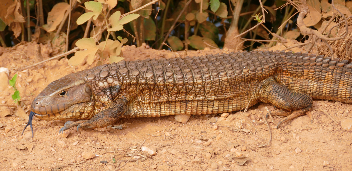 Размеры этой ящерицы впечатляют. Взрослые особи могут достигать 1-1,2 метра в длину, причем большая часть этой длины приходится на мощный, мускулистый хвост. Вес может доходить до 4-5 килограммов. Это делает ее одной из самых крупных ящериц Южной Америки.