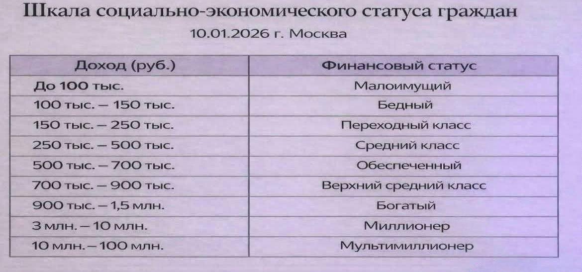 Россиян с доходом до 100 тысяч рублей в месяц начали классифицировать как малоимущих по новой шкале