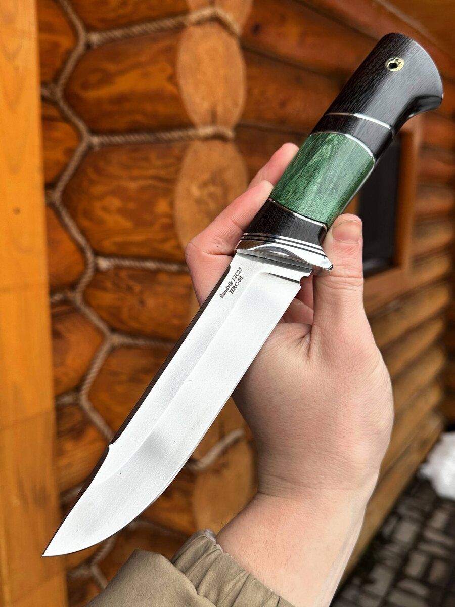 ΠΠ°ΡΠ΅ΡΠΈΠ°Π» ΠΊΠ»ΠΈΠ½ΠΊΠ°: ΡΠ²Π΅Π΄ΡΠΊΠ°Ρ Π½Π΅ΡΠΆΠ°Π²Π΅ΡΡΠ°Ρ ΡΡΠ°Π»Ρ Sandvik 12C27 Ρ Π°Π½ΡΠΈΠ±Π»ΠΈΠΊΠΎΠ²ΠΎΠΉ ΠΎΠ±ΡΠ°Π±ΠΎΡΠΊΠΎΠΉ Π ΡΠΊΠΎΡΡΡ Π½Π°Π±ΠΎΡΠ½Π°Ρ, ΡΠ°Π΄ΠΈΡΡΠ½Π°Ρ, ΠΈΠ· ΡΡΠ°Π±ΠΈΠ»ΠΈΠ·ΠΈΡΠΎΠ²Π°Π½Π½ΠΎΠΉ Π·Π΅Π»ΡΠ½ΠΎΠΉ ΠΊΠ°ΡΠ΅Π»ΡΡΠΊΠΎΠΉ Π±Π΅ΡΡΠ·Ρ ΠΈ ΡΡΡΠ½ΠΎΠ³ΠΎ Π³ΡΠ°Π±Π° Π’Π²ΡΡΠ΄ΠΎΡΡΡ: 60 HRC β ΠΎΠΏΡΠΈΠΌΠ°Π»ΡΠ½ΡΠΉ Π±Π°Π»Π°Π½Ρ ΠΌΠ΅ΠΆΠ΄Ρ Π΄ΠΎΠ»Π³ΠΎΠ²Π΅ΡΠ½ΡΠΌ ΡΠ΅Π·ΠΎΠΌ ΠΈ Π²ΠΎΠ·ΠΌΠΎΠΆΠ½ΠΎΡΡΡΡ Π»Π΅Π³ΠΊΠΎ Π·Π°ΡΠΎΡΠΈΡΡ Π½ΠΎΠΆ Π΄Π°ΠΆΠ΅ Π² ΠΏΠΎΡ