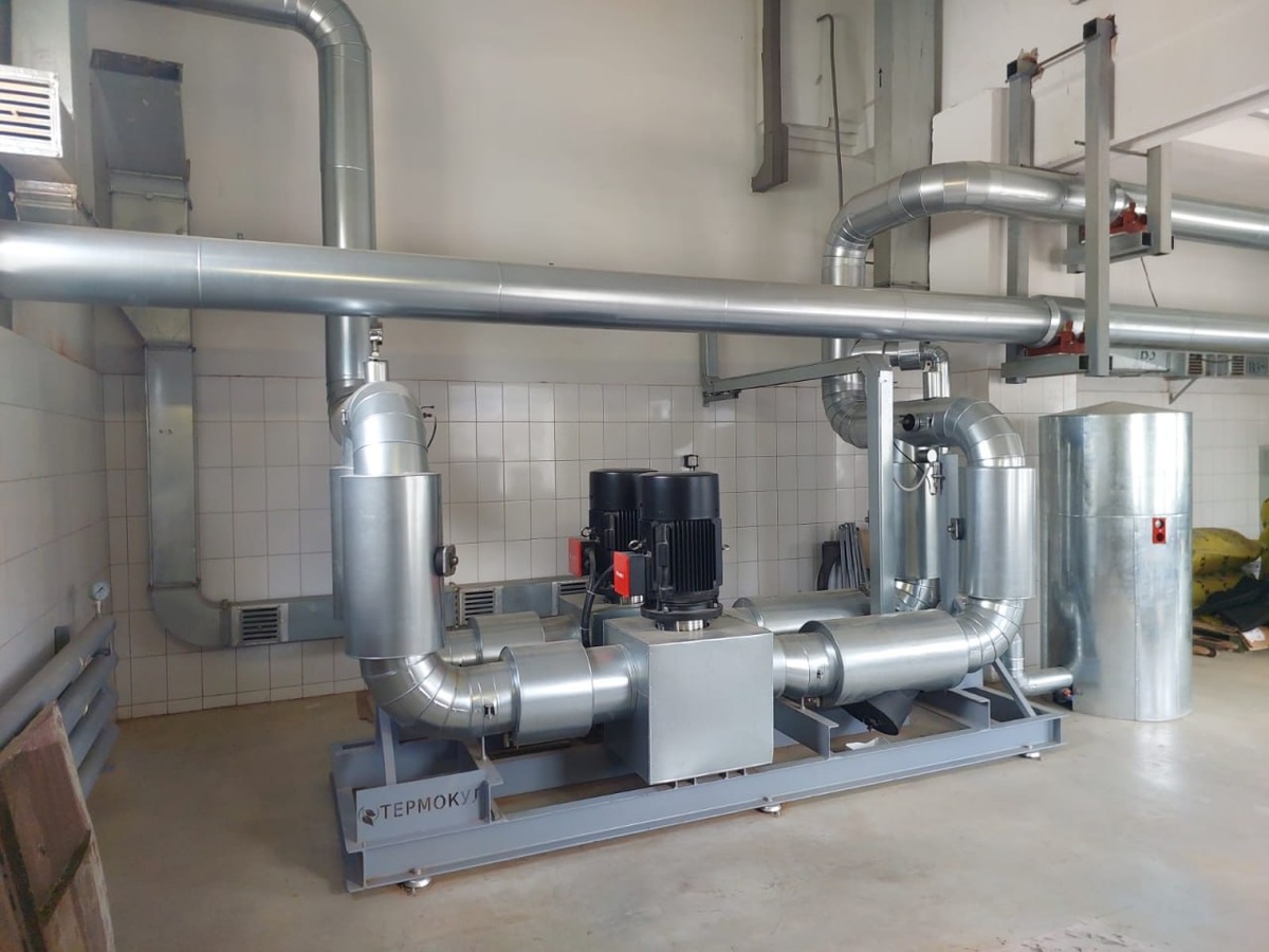 Компания ТЕРМОКУЛ завершила очередной проект — реконструкцию системы холодоснабжения колбасного цеха на мясоперерабатывающем заводе. Основной задачей стало обеспечение стабильного и энергоэффективного холодоснабжения технологических процессов, поскольку ранее действующая система уже не справлялась с возросшими нагрузками. В рамках проекта выполнен полный цикл работ: изготовление и поставка оборудования, монтаж, пусконаладка, автоматизация и ввод системы в эксплуатацию. В основе модернизированного решения — чиллер с выносным воздушным конденсатором на базе двух винтовых полугерметичных компрессоров Refcomp. Холодопроизводительность оборудования составляет Qo = 630 кВт в рабочем диапазоне температур хладоносителя от –8 до –4 °С. Выбор винтовых компрессоров обусловлен их способностью сохранять высокую эффективность при переменных нагрузках, что особенно важно для колбасного производства с его неравномерными технологическими циклами. Система автоматически регулирует производительность к