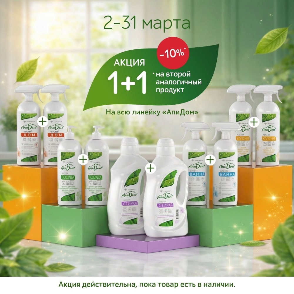 ❗️С 2 по 31 марта в "Тенториум" действует специальное предложение: при покупке любого средства из линейки "АпиДом" - скидка 10% на второе аналогичное!