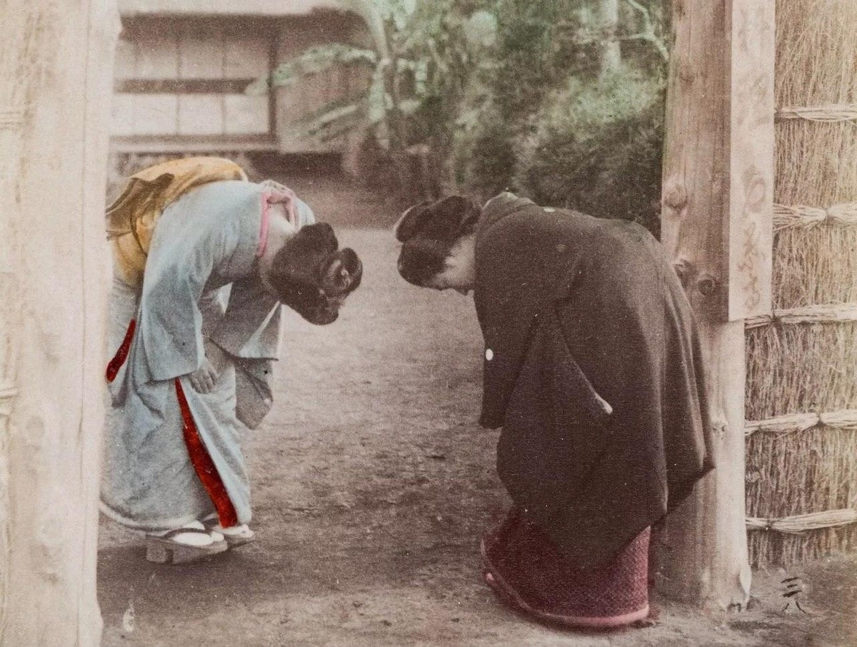 Япония — страна, где этикет играет очень важную роль для ежедневной коммуникации. Манера речи и жестов определяет степень уважения человека к собеседнику. Особенную роль в системе правил поведения людей в японском обществе играет поклон. Этот жест и по сей день является неотъемлемой частью повседневной жизни каждого японца. Существует много теорий происхождения японского поклона, но согласно наиболее распространённой версии японский поклон お辞儀 о-дзиги, появился в период Асука и Нара (VI-VIII век) во время распространения буддизма из Китая. В это время на основе идей конфуцианства формировалось японское общество, а буддизм активно внедрялся в жизнь японцев, поэтому именно из них поклон берёт свой исток. Так, например, в буддийском учении поклон являлся неотъемлемой частью религиозной церемонии, во время которой с помощью поклона проявлялось благочестие и уважения к Будде. А согласно идеям Конфуция данный жест был прямым отражением социального статуса. Например, когда человек более низко