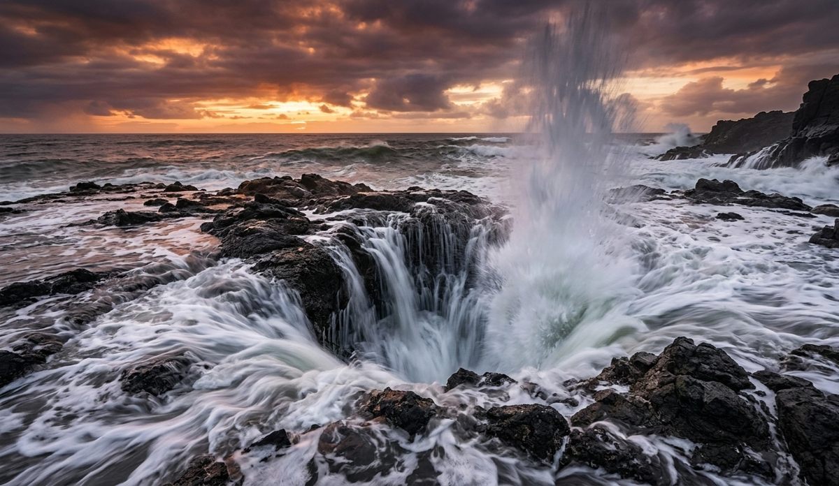 На берегу океана есть место, которое называют «Вратами в преисподнюю». Это огромная каменная чаша, которая во время прилива превращается в нечто пугающее.