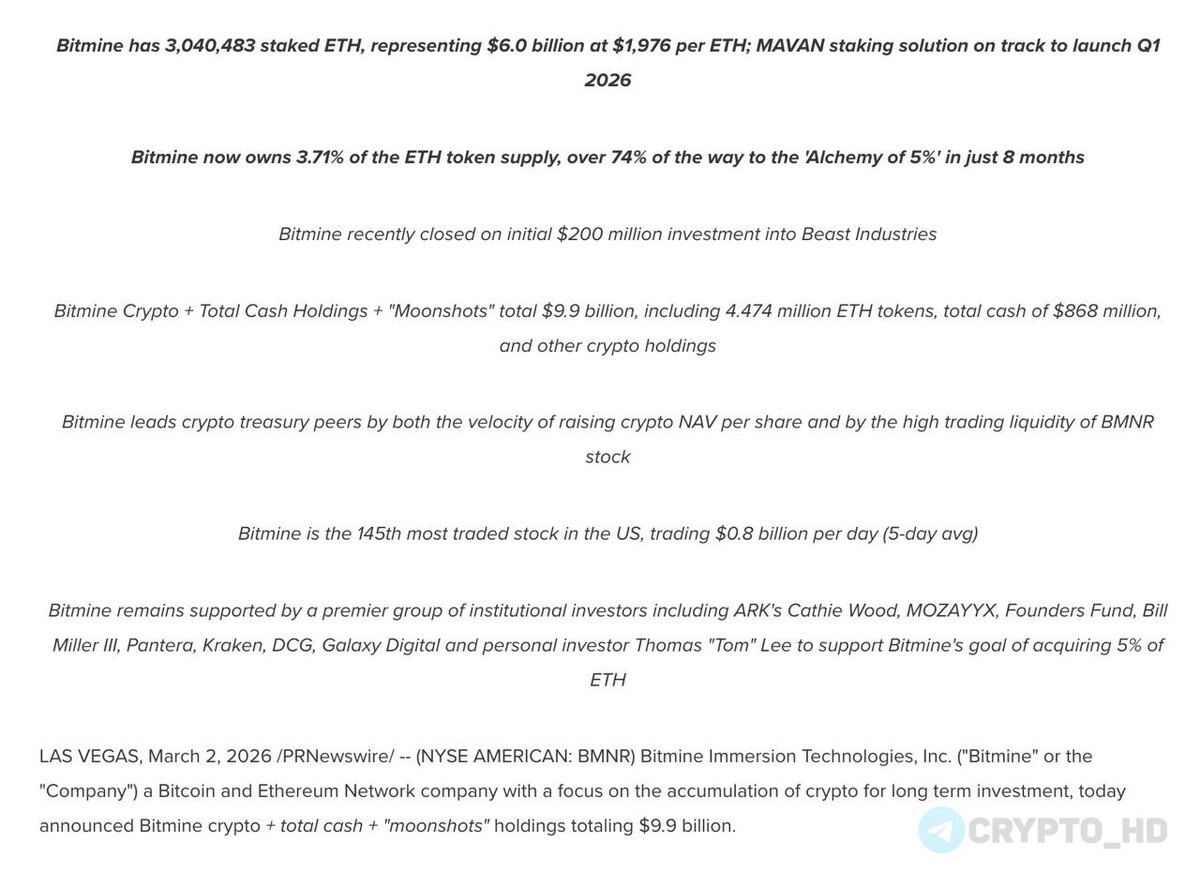 ▪ Всего куплено: 4,473,587 ($8,6b) – примерно 3,71% от Total supply. ▪ Средняя цена покупки: $1976. ▪ Свободный кэш для пополнения резервов: $868m. ▪ В стейкинге: 3,040,483 ETH ($6b). ▪ Нереализованные убытки: -$8b. Crypto Headlines