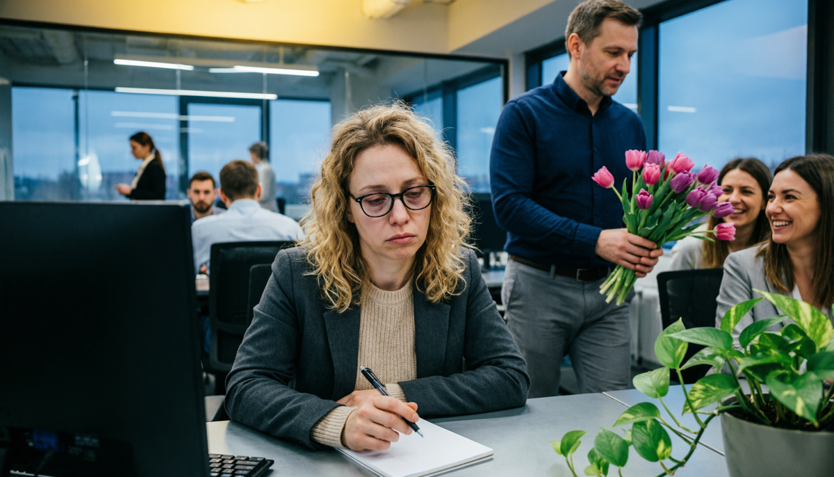 На работе «поздравление» вышло еще циничнее. Начальник отдела, вечно озабоченный отчетами мужчина, зашел в опенспейс с большим пакетом и принялся вручать женщинам по жиденькому тюльпану в целлофане. «С праздничком, девочки, цветите», — бормотал он, проходя мимо столов. Катя поправила очки, расправила плечи и приготовилась принять свой законный цветок. Но начальник прошел мимо. Просто не заметил. Или забыл. Катя осталась сидеть с чувством полного опустошения.