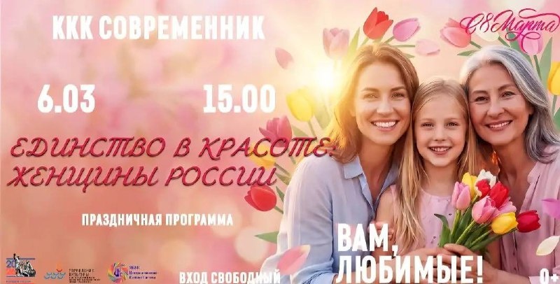 Он пройдет в ККК «Современник» 6 марта. В программе — театрализованные блоки, каждый из которых раскроет женщин с разных сторон: женщины-хранительницы традиций, женщины современного мира, женщины-наставницы будущего. Концерт объединит разные жанры и стили — от аутентичных народных песен до современных композиций, от традиционных танцев до динамичных эстрадных постановок. Начало в 15:00. Вход свободный! Оперативные новости в МАХ