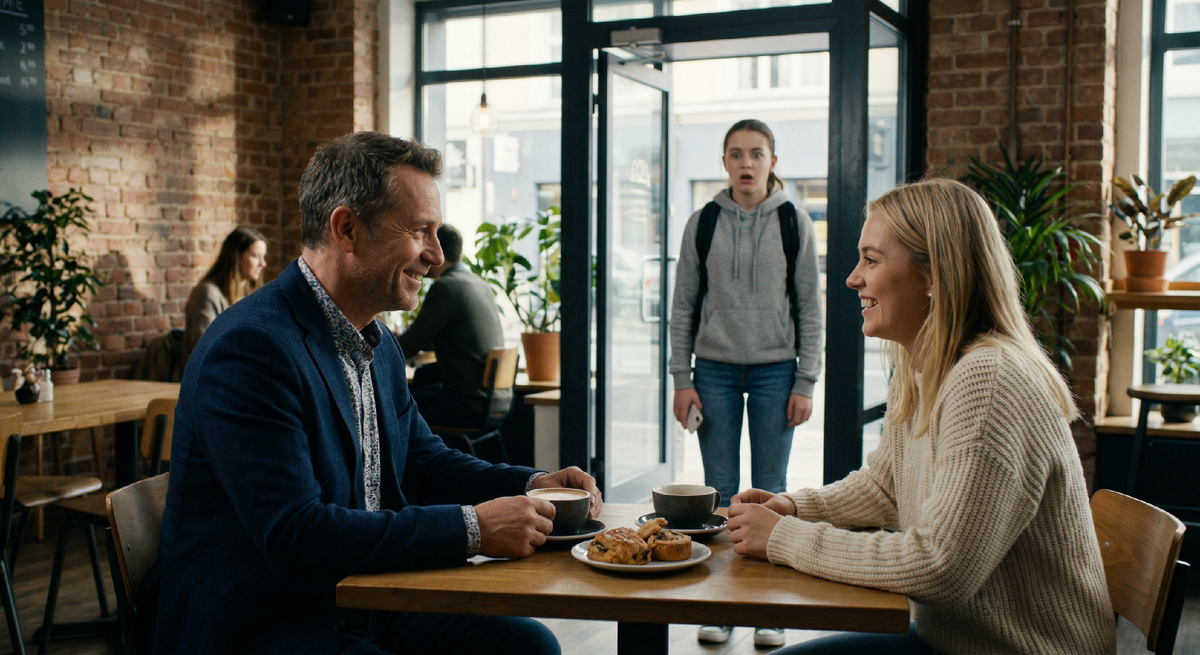 И тут Настя замерла. За столиком у окна сидел ее отец. С чашкой кофе и круассаном. Напротив него — блондинка. Примерно Настиного возраста. Ну, может, чуть старше. Лет двадцать, от силы. Она кокетливо поправляла волосы и смотрела на него такими глазами, будто он только что сошел с обложки журнала.