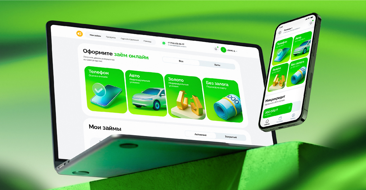 Таск — разработать инфраструктуру онлайн-микрокредитования с нуля: адаптация под рынок Казахстана, прозрачный UX, интеграции с BrainySoft и другими вендорами, безопасная логика выдачи займов под телефоны, золото, авто и без залога.