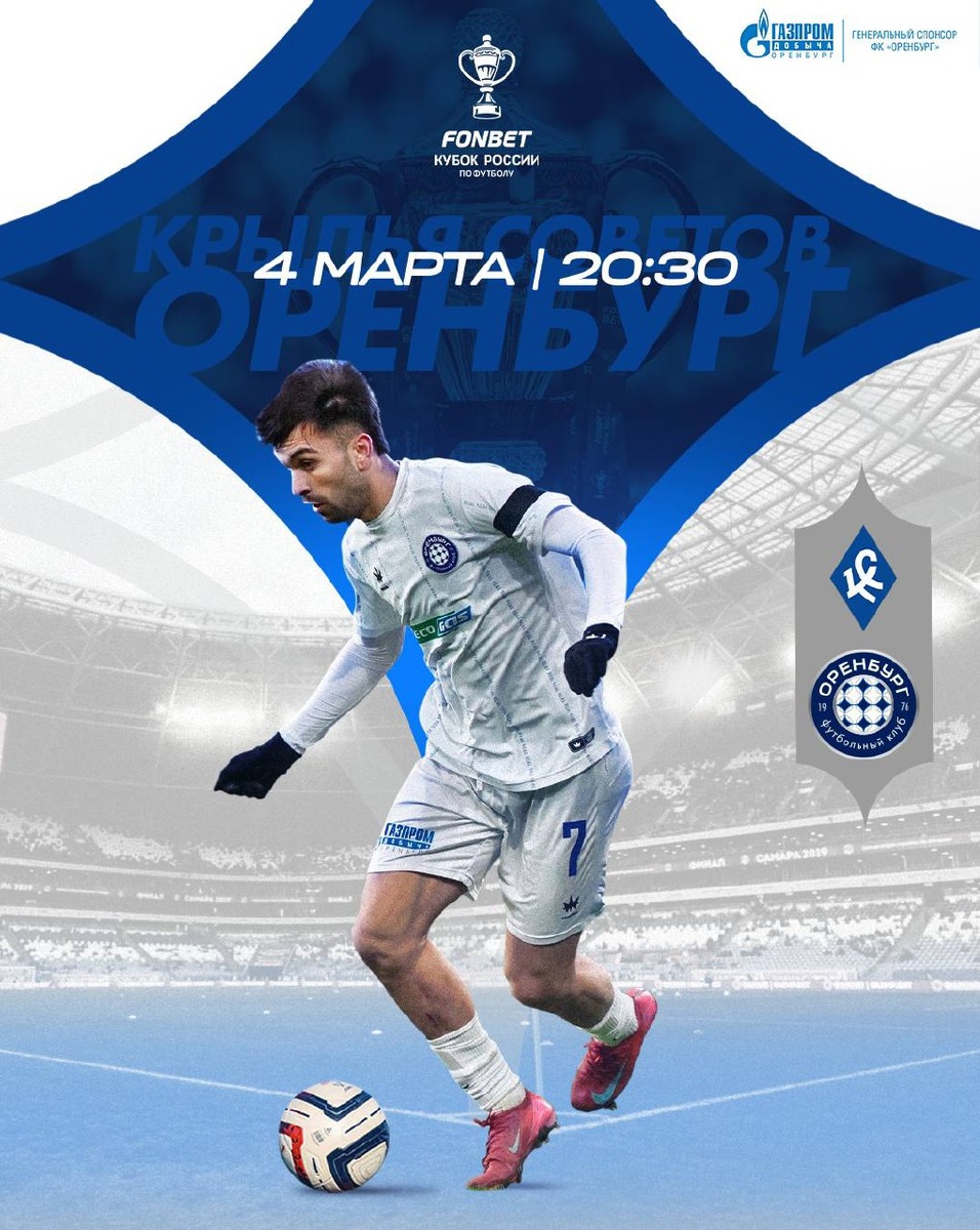 4 марта в рамках 1/4 финала Пути регионов ФОНБЕТ Кубка России сыграем в Самаре против «Крыльев Советов». Начало матча — в 20:30.