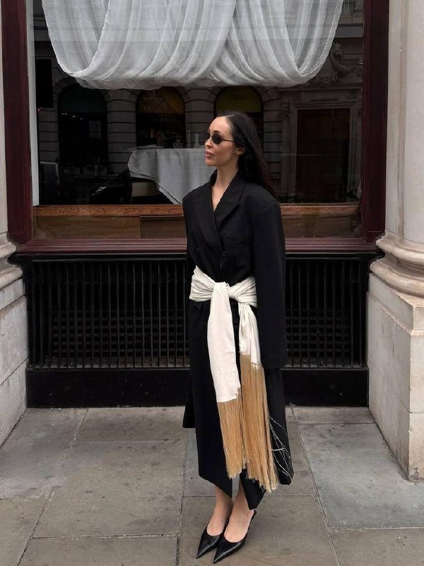 Сегодня на арене шарф с бахромой. Я этот трюк люблю давно и ношу его из года в год. А сейчас он ещё и влетел в модную повестку благодаря Maison Magdalena. Так что пользуемся моментом: вложений ноль, а уровень стиля на взлёт. Берём длинный шарф. Повязываем на талии или на бёдрах. И всё. Закрепить можно: — простым узлом — крупной брошью — большой булавкой Работает удивительно хорошо. С прямыми платьями. С платьями-рубашками. С пиджаками. С пальто. И даже в максимально простых образах с джинсами или брюками. Это тот случай, когда одна деталь делает образ сложнее. Но есть нюанс. Если вы не хотите акцентировать бёдра не добавляйте туда объём. Шарф в этой зоне автоматически притягивает взгляд. Шарф должен быть мягким и достаточно тонким, чтобы струился. Идеально шёлк или вискоза. Отлично работает тонкая шерсть. Главное чтобы не стоял колом. Всё. Пять минут перед зеркалом и образ уже выглядит так, будто вы продумывали его час 🖤✨ _____________________ Как будто пора придумывать тег