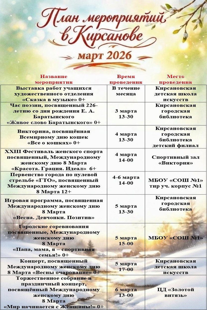 Мы рады представить вам список спортивных и культурных мероприятий, которые пройдут в нашем городе в марте