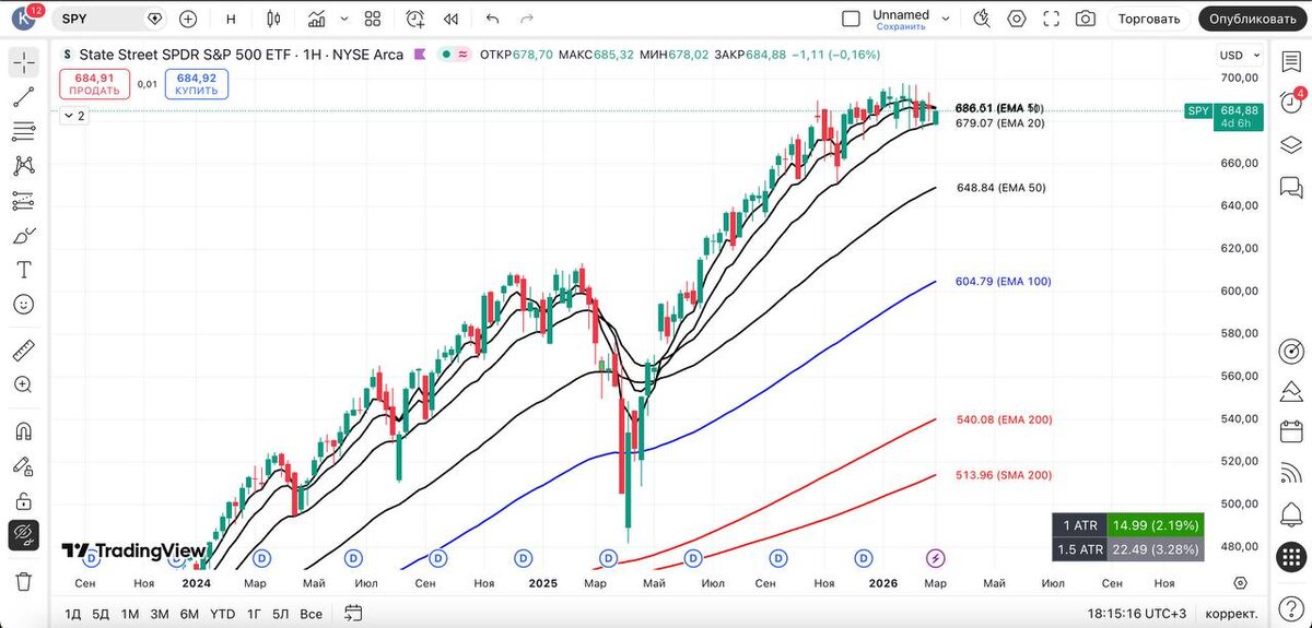 А у нас 20 EMA W на $SPY — синоним уверенного «бычьего» тренда. До тех пор, пока цена не нарушает свою закономерность и не закрывается ниже 20 EMA W, тренд с большей вероятностью будет продолжаться — и мы поэтому продолжаем действовать в направлении тренда. #spy #технический_анализ #америка #трейдинг_сша #фондовый_рынок
