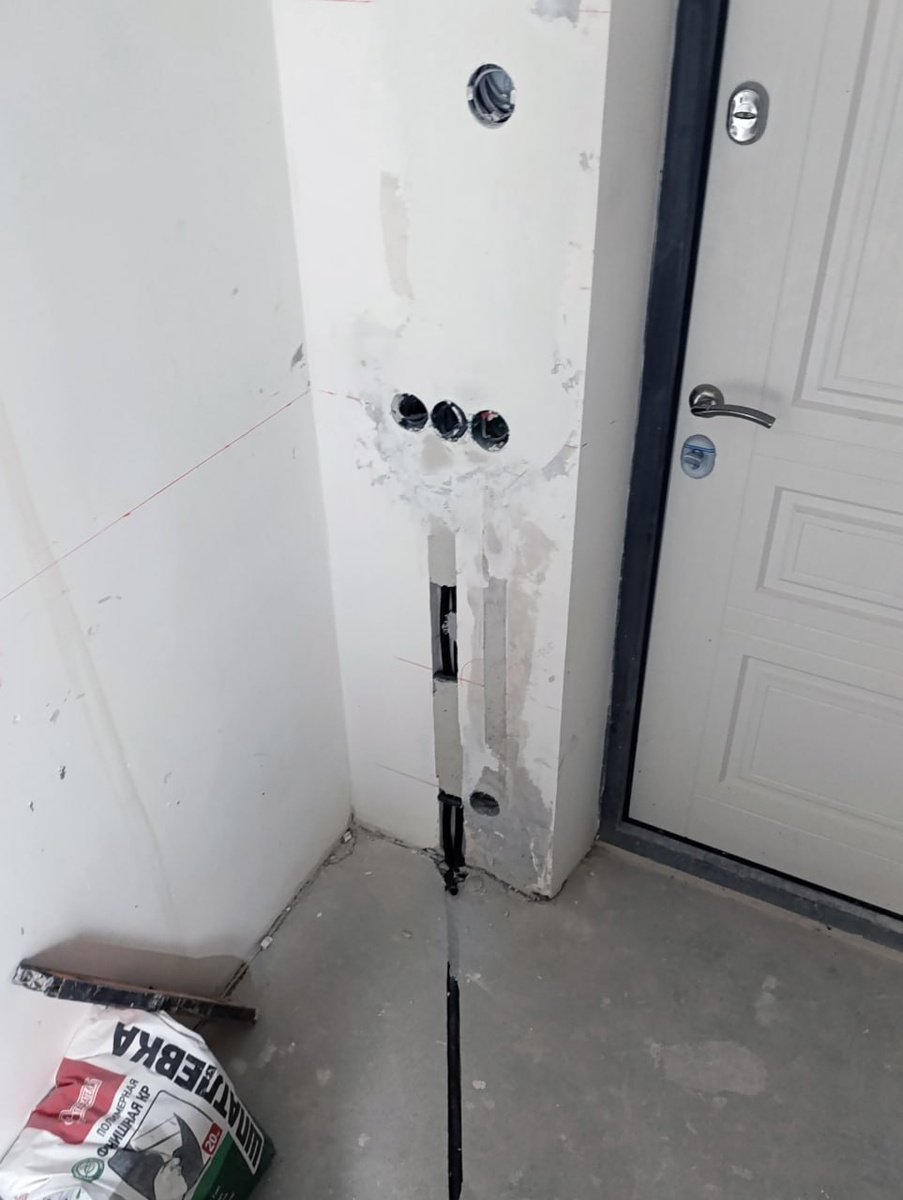 тут и коробка под домофон, ну или мониторчик какой нибудь, и место под всевозможные блоки сопряжения и каналы позволяющие попасть как в квартирный щит, так и в этажный чтобы дополнить заложенные уже коммуникации чем то новым. В трех подрозетниках ниже место под терморегулятор (мы сразу заложили гофры под холодный конец греющих матов и датчик температуры, чтобы у плиточника все получилось) розетку и многофункциональный выключатель! Ранее было так: https://t.me/elekt_riki/366?single #elekt_riki #жклюксембург