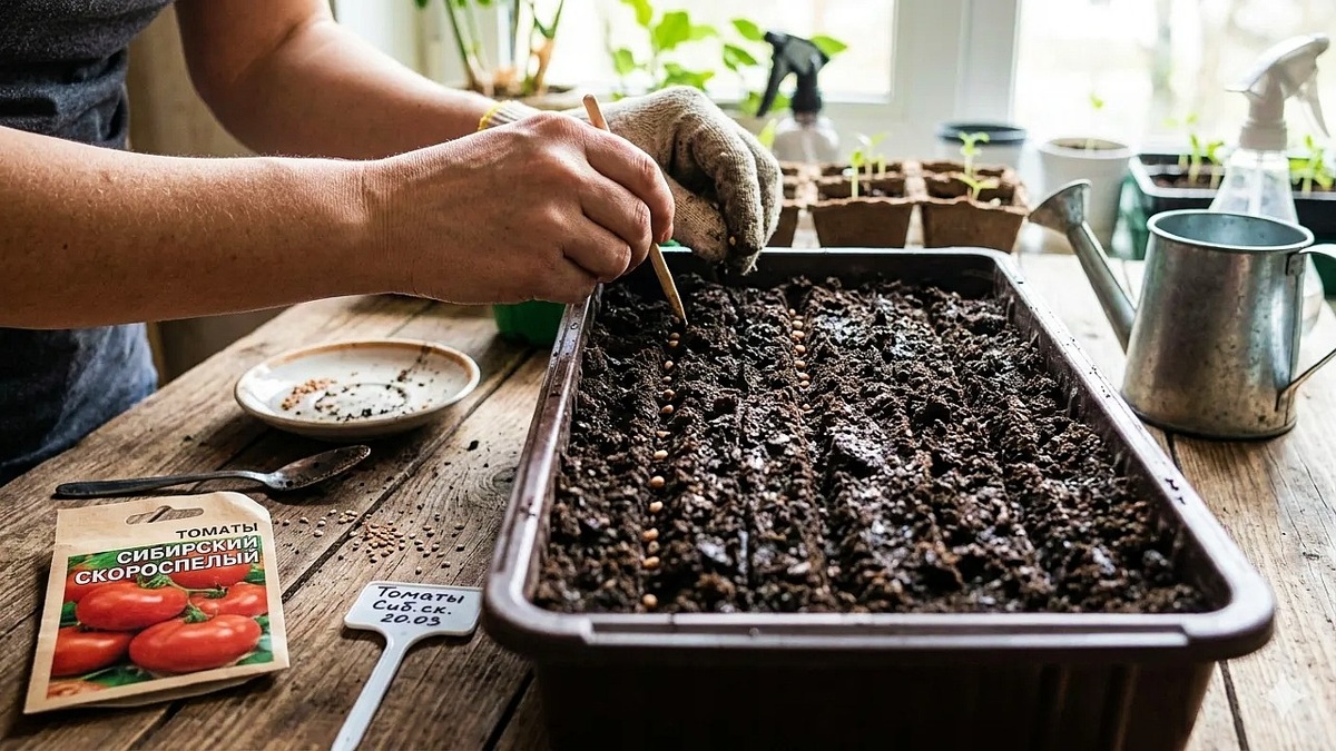 Вот подробная инструкция по посадке томатов на рассаду в марте — от опытного садовода. Начните с подготовки семян. Если они не обработаны производителем, продезинфицируйте их: замочите в розовом растворе перманганата калия на 20 минут или же в хлоргексидине на такой же срок по времени. Затем можно прорастить семена во влажном ватном диске или салфетке при температуре около +25 — так вы заранее убедитесь в их всхожести. Проветривайте семена раз в сутки, чтобы обеспечить доступ кислорода. Как только появится белый корешок, приступайте к посеву. Подготовьте ёмкости: контейнеры, кассеты, пластиковые стаканчики или ящики высотой 8–10 см. Обязательно сделайте дренажные отверстия на дне. Если планируете пикировку, подойдут общие ёмкости; если хотите обойтись без неё — берите отдельные стаканчики объёмом 250-400 мл. Используйте готовую смесь для рассады с пометкой «обеззаражено», либо приготовьте смесь самостоятельно. Оптимальный состав: в равных частях верховой торф и перегной, плюс часть п