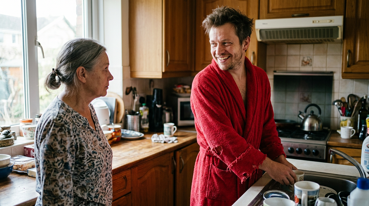 У раковины стоял зять. На нем был надет ее старый вишневый махровый халат с потертыми манжетами. Халат был Тамаре по щиколотку, а Артему едва доходил до колен и смотрелся на нем весьма нелепо.