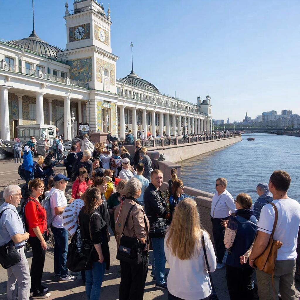 На борту теплохода открываются виды, которые никак не увидеть с берега: фасад вокзала с воды выглядит особенно величественно, а белоснежные суда у причалов создают настоящую атмосферу большого порта. Вечером ходят диско-теплоходы с живой музыкой и панорамными огнями Москвы.
