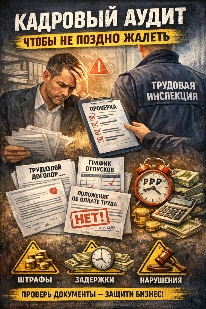 ➡ Пройти кадровый аудит организации — полноценную проверку всех документов, договоров, ЛНА, графиков отпусков, процедур увольнений и персональных данных.