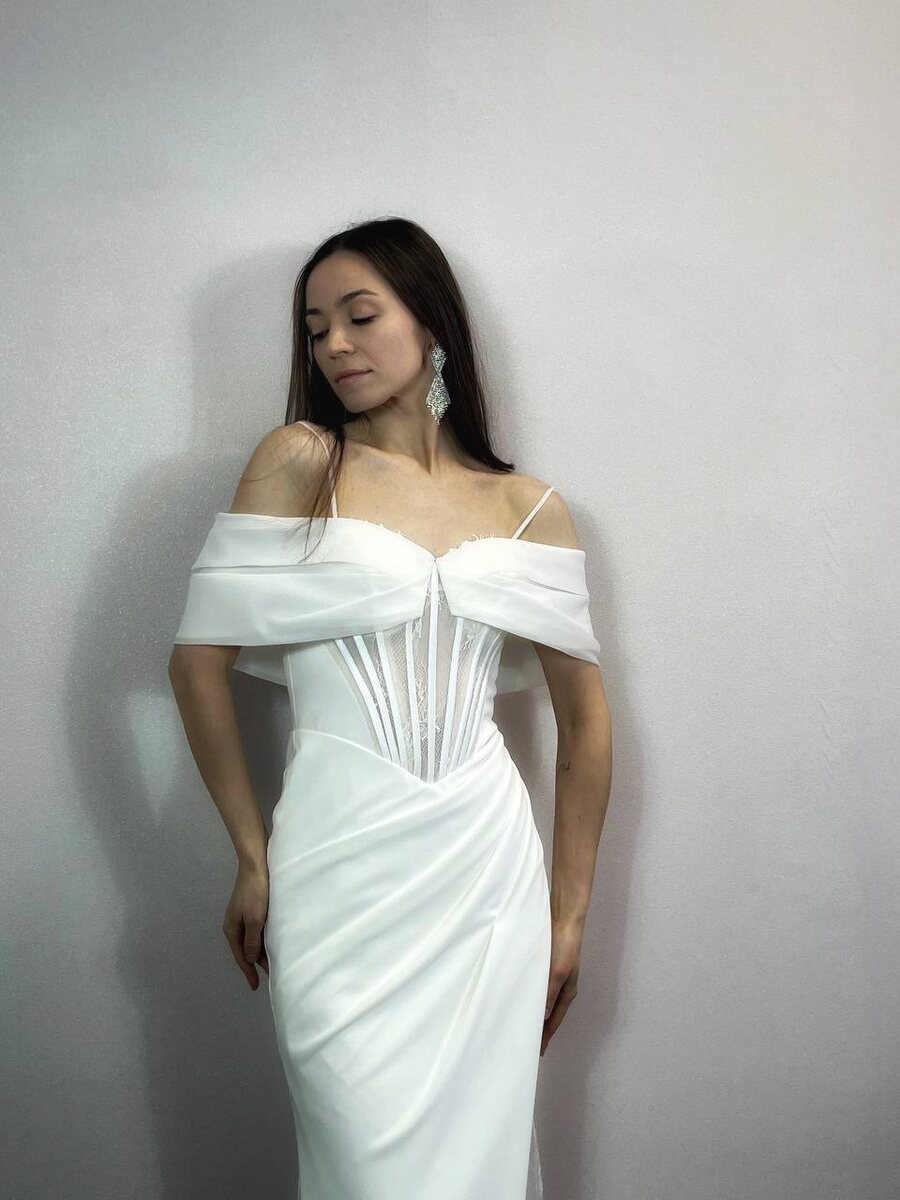 •Нежная и элегантная модель платья, которое идеально подчеркивает вашу фигуру •Вырез на левой ноге, с кружевной вставкой, добавляет шарм к вашему образу •Но всё внимание забирает корсет: сетчатые вставки выглядят прекрасно, прям как это платье будет выглядить на вас! 🤍Мы знаем, что вам нужно! Записывайтесь на примерку и скорее забирайте платье «вашей мечты»!