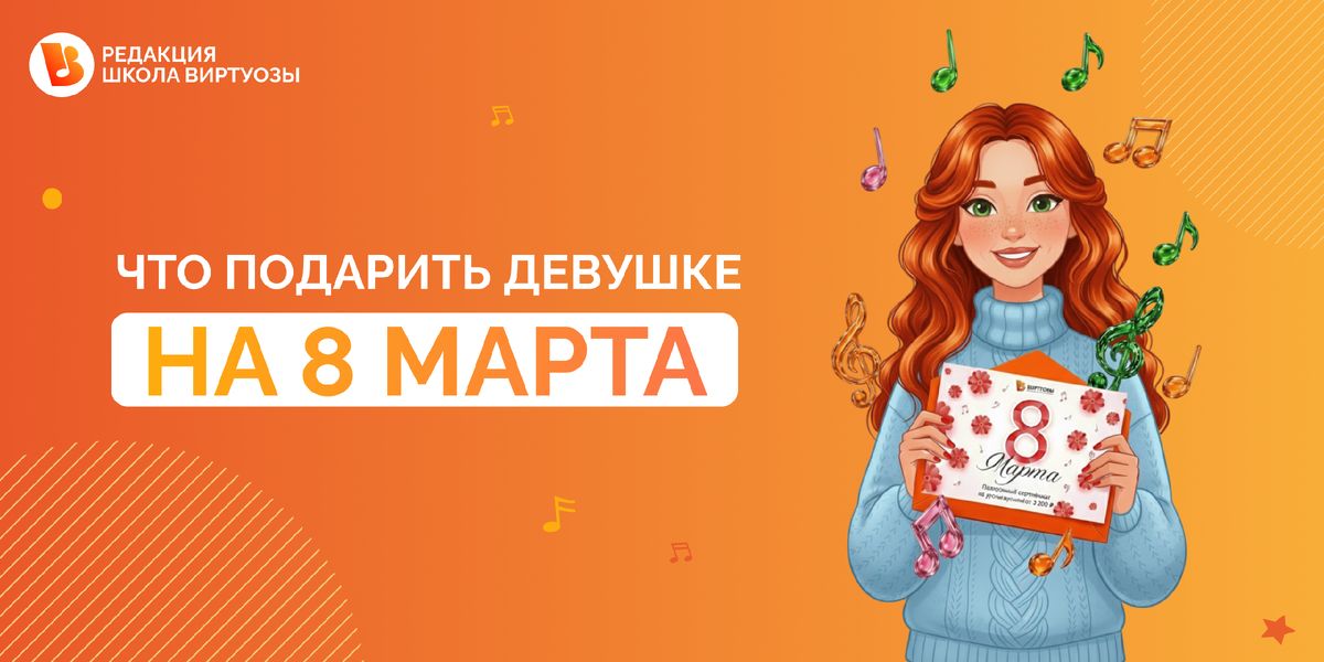 Хочется, чтобы подарок был не случайным, не купленным в последний момент, а таким, чтобы она почувствовала: ты правда думал о ней. Цветы — обязательно. Это даже не обсуждается. Но цветы — это фон. А дальше начинается самое интересное. Вот несколько вариантов, которые работают, если хочется произвести впечатление. Если хорошо знаешь её стиль — это всегда сильный ход. Украшение, которое она будет носить, — это про память. Главное, чтобы это было «в её характере», а не просто красивое. Поездка на выходные, билеты на концерт, свидание в необычном формате. Такой подарок усиливает ваши отношения. Это не вещь, а момент, который вы проживаете вместе. Вот это уже уровень выше. Если девушка хоть раз говорила, что хотела бы петь, играть на инструменте или заняться чем-то творческим — это нельзя пропускать. Такие фразы не просто так появляются. Подарочный сертификат в школу музыки — это не просто «курсы». Это поддержка её интереса. В школе музыки «Виртуозы» в Москве более 30 направлений: вокал, фо