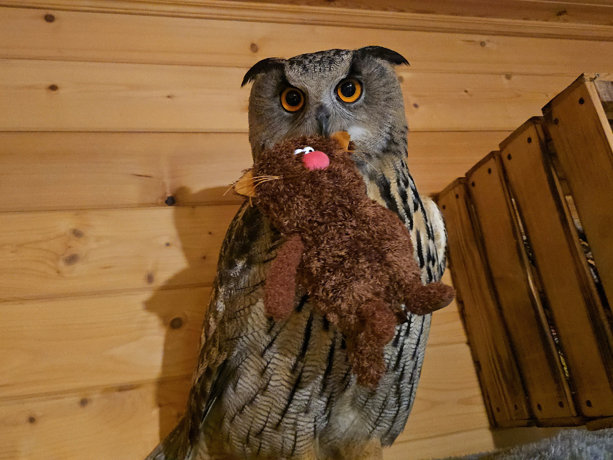 Я ушла кормить крыс, а сова Ёль осталась отдыхать в доме.
