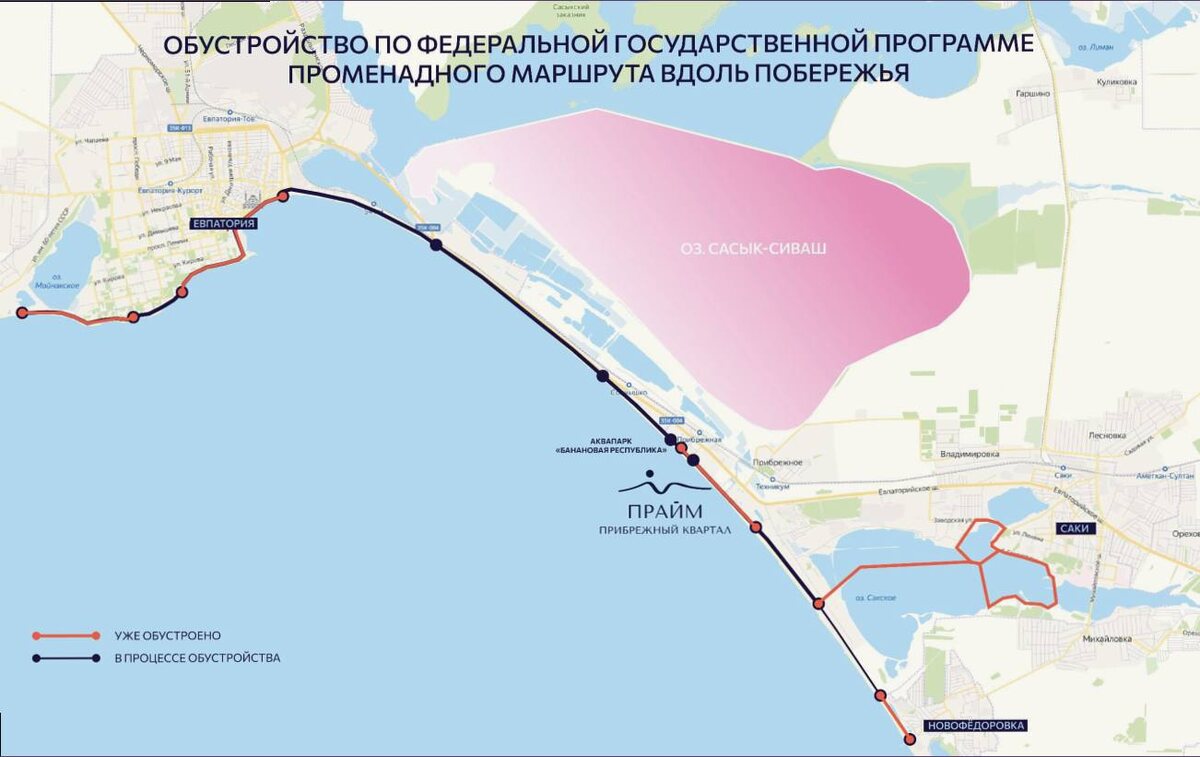 Это не рендер из презентации застройщика. Это федеральная программа с утверждённым финансированием и конкретными сроками. И это меняет всё. Что происходит на самом деле: Проект строительства и реконструкции автодороги для туристического кластера включён в федеральную программу «Социально-экономическое развитие Республики Крым и г. Севастополя». Деньги выделены. Этапы утверждены. Этап 1 - реконструкция ул. Симферопольской. Более 10 км новой дороги. Ввод в 2027 году. Этап 2 - транспортный узел и магистраль II класса. Около 7 км, 4 полосы, скорость 90 км/ч. Ключевое решение: региональная автодорога переносится за железную дорогу. Рекреационная зона освобождается от транзитного трафика. На освободившейся территории формируется набережная протяжённостью около 12 километров. В связке с променадом «Прайма» это станет **самым протяжённым морским променадом в России.** А теперь - про деньги Есть простой закон рынка недвижимости, который работает везде и всегда: когда под окнами вместо дороги по