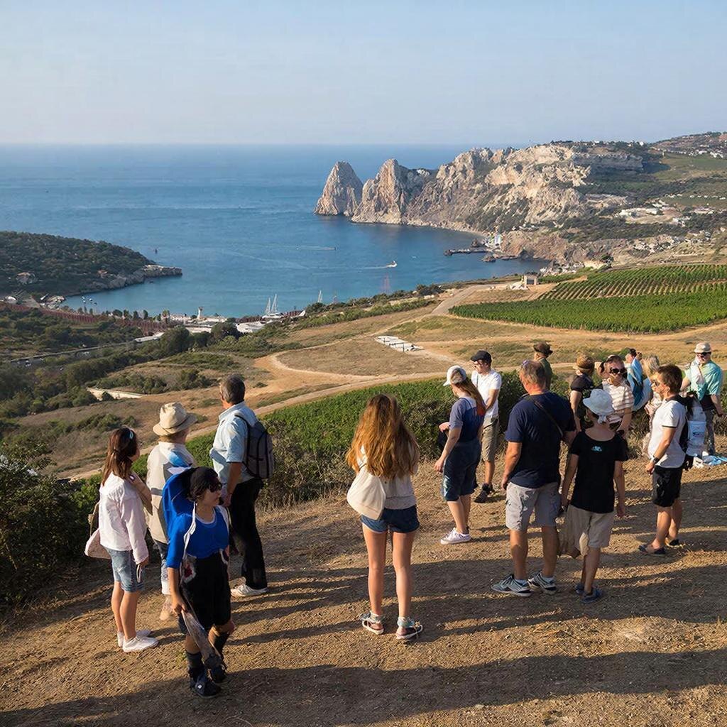 Попасть в заповедник можно только в составе организованной экскурсии с гидом. Пешеходный маршрут «Большой Карадаг» длиной около 7 км занимает порядка 4 часов и проходит по Береговому хребту с выходом к посёлку Коктебель. Панорамы открываются такие, что дух захватывает — особенно в точках над морем.