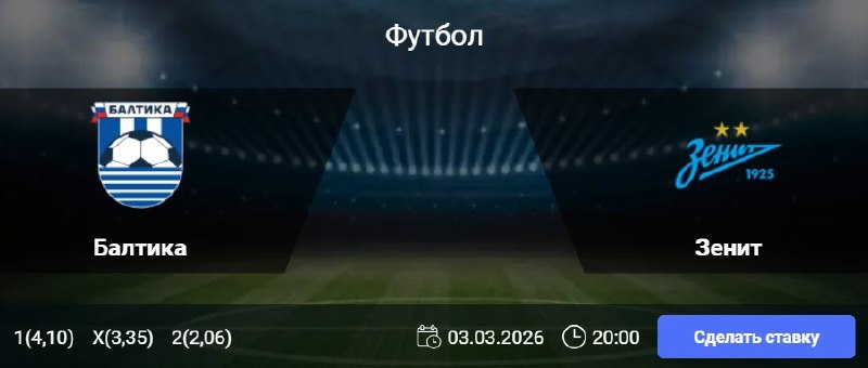 Балтика - Зенит: 1/2 финала Кубка России Путь регионов (03/03/26/20:00