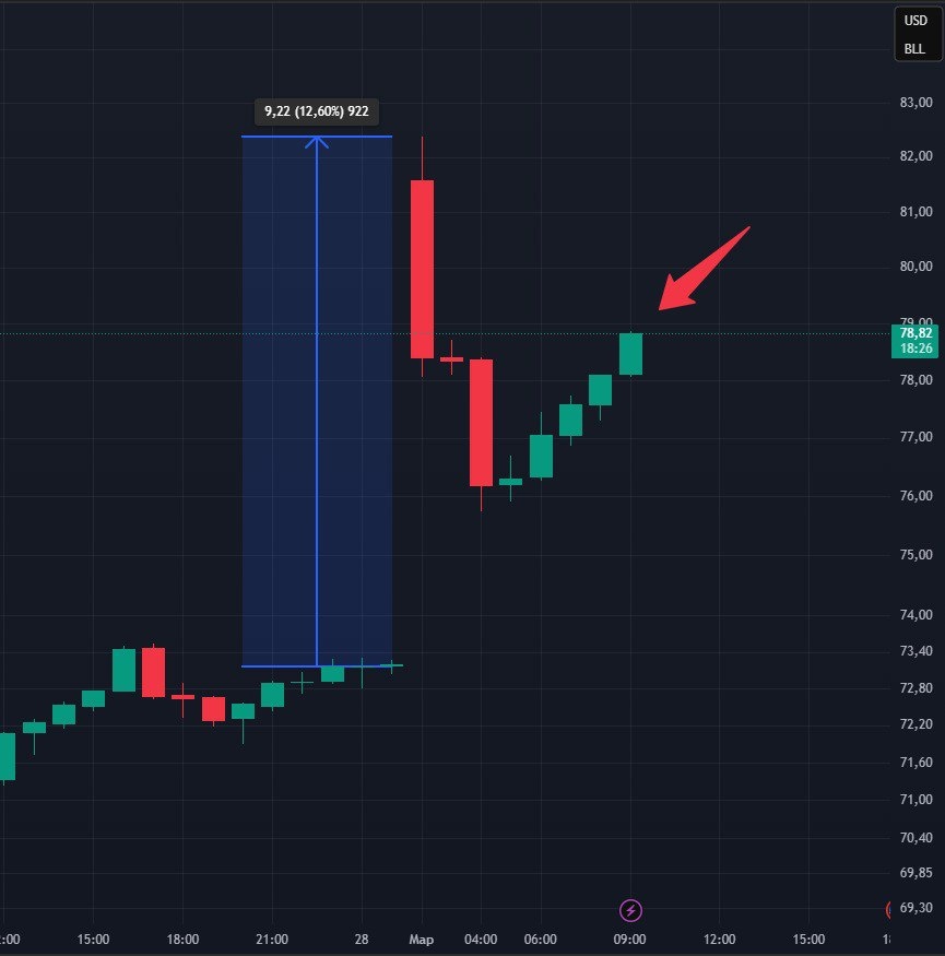 Торги по нефти Brent стартовали с резкого роста до $82, показав увеличение на 12