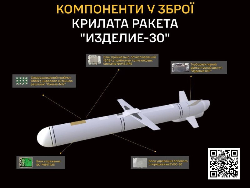 Тем временем ГУР Украины заявляет, что Россия стала применять для ударов по целям на Украине новую дозвуковую крылатую ракету воздушного базирования "Изделие-30".