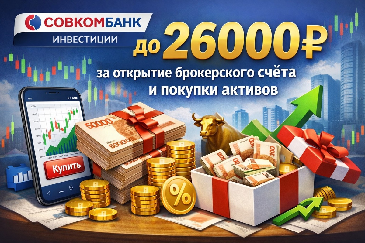 ⚡️До 31.05.2026 действует акция для новых клиентов – можно получить до 26 000₽ бонусами за открытие брокерского счёта и регулярные инвестиции в течение 9 месяцев.