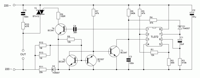 Владельцы электроинструментов иногда сталкиваются с проблемой резкого запуска двигателя. Это характерно для таких устройств, как болгарки, циркулярные пилы, рубанки и другие. Резкий старт приводит к ряду негативных последствий: во-первых, возникает высокий пусковой ток, который может повредить проводку; во-вторых, из-за резкого старта быстрее изнашиваются механические компоненты инструмента; в-третьих, уменьшается удобство использования, так как при включении болгарку приходится крепко держать, чтобы она не вырвалась из рук. В дорогих моделях электроинструментов уже предусмотрена система плавного пуска, которая решает эти проблемы. Однако если такой системы нет, можно самостоятельно собрать схему плавного запуска. Кроме того, эта схема может быть полезна для лампочек накаливания, которые часто перегорают при включении. Плавный пуск значительно снижает вероятность быстрого перегорания лампочки. В сети часто обсуждается схема плавного пуска, основанная на редкой отечественной микросхеме