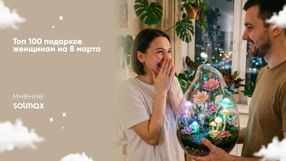 Весна уже на пороге, а это значит, что пора ломать голову над главным вопросом: что подарить любимым женщинам на 8 марта? Международный женский день — праздник особенный. Хочется удивить, порадовать и не ударить в грязь лицом. Чтобы вы не метались между «купить ещё один букет» и «подарить сертификат в магазин косметики», мы собрали для вас настоящую энциклопедию подарков. 100 идей — от проверенной классики до свежих трендов. И конечно, расскажем, что из этого списка можно найти в нашем магазине Solmax Home.