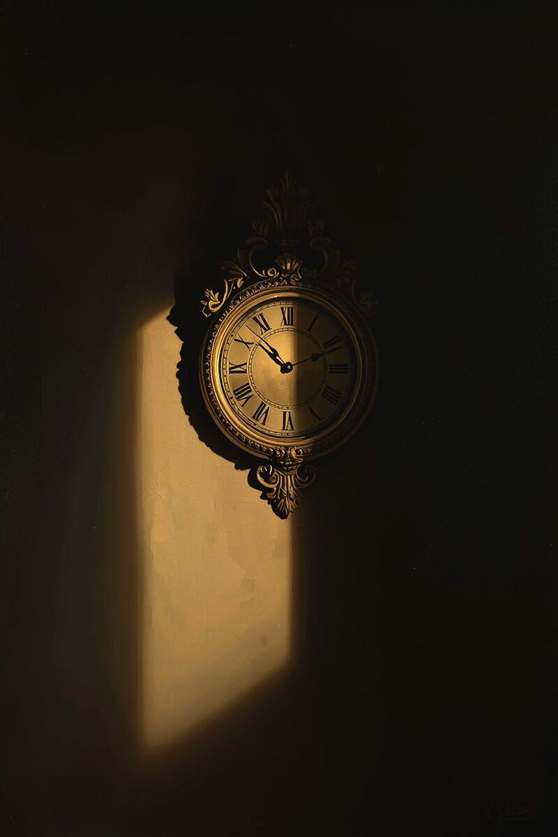 Я — часы. Которые дают точное время только дважды в сутки. Всё остальное — я иду вперёд или отстаю, но никогда не бываю в моменте. Мой корпус — рифлёное золото. Мой силуэт на стене — безупречен. Я создан, чтобы указывать путь. А я лишь отбрасываю виноватую тень. Я стучу. Не тикаю — именно стучу. Пустым металлическим треском, который оглушает даже меня. Этот стыд — моя единственная точная мера. Я вишу здесь ровно столько, сколько нужно,чтобы понять: я занял это место не случайно. Я — маяк для тех, кто тоже сбился с ритма и думает,что его тиканье — всего лишь шум. Я — неисправные часы, которые показывают самое важное время: время простить себя за то, что твой ход не совпадает с боем всех городских курантов.