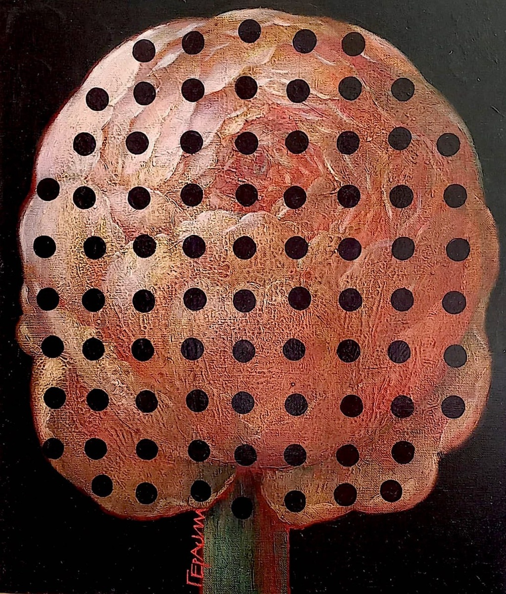 ⭐️Автор, чей творческий путь начался в Риге и продолжился в Ленинграде с 1978 года, за годы творческой деятельности выработал узнаваемый всеми почерк, востребованный сегодня во многих крупнейших государственный музеях (от музея истории Санкт-Петербурга до «Манежа» в Москве). Статус автора подтверждает и то, что самая большая частная коллекция его картин принадлежит известному собранию Николаю Сердечному. 🎈Название «Цвет времени» раскрывает философскую концепцию автора. Время здесь - это не линейная прямая, а плотная структура, через которую мы смотрим на мир. Сетка из черных точек символизирует систему координат, попытку человека упорядочить текучую реальность, расшифровать её для понимания. Это своеобразное сито памяти: через его отверстия мы видим лишь фрагменты прошлого. Многослойная фактура за точками - это пласты истории, смыслы и чувства, которые спрессовались в единое целое. Картина задает вопрос: что мы видим на самом деле - саму жизнь во всей её полноте или лишь тот упорядо
