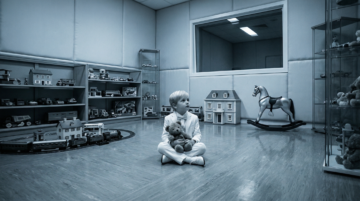 Он ворвался внутрь. Мальчик сидел на полу в той же игровой комнате, сжимая плюшевого медведя. Он не плакал. Он просто качался из стороны в сторону, глядя в одну точку.