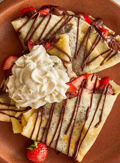1/2 ст. л. нутелла на один блинчик + немного растопленной нутеллы для поливки