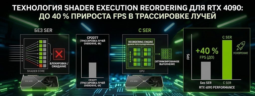 🔼 Shader Execution Reordering дает RTX 4090 до +40 % fps в трассировке лучей
