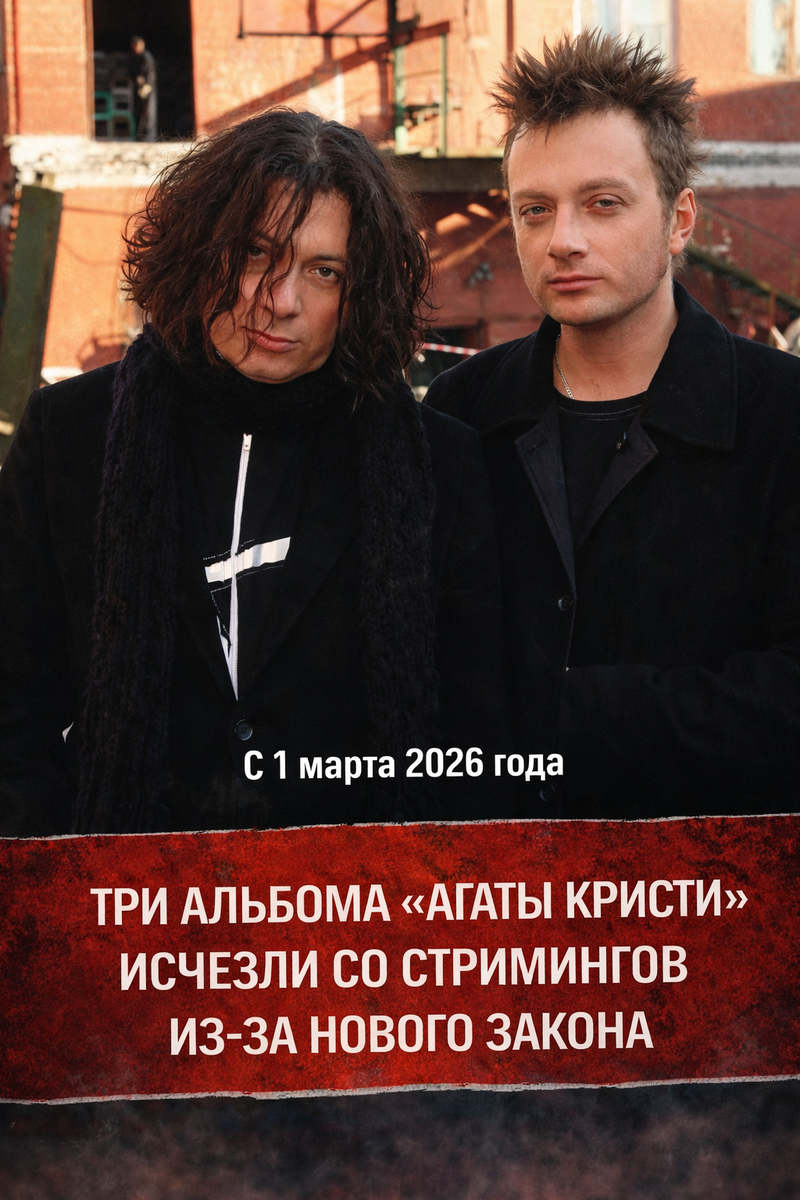 В стримингах пропали «Декаданс» (1990), «Опиум» (1995) и «Ураган» (1997). Вадим Самойлов подтвердил, что релизы сняты в связи с новыми цензурными нормами. По его словам, группа прогнала каталог через ИИ-анализатор, который проверяет тексты на запрещённый контент, выявила три проблемные песни — и была вынуждена убрать целые альбомы, поскольку точечное удаление треков технически невозможно. Самойлов назвал закон «сырым и несовершенным», однако подчеркнул, что требования необходимо выполнять. Музыканты планируют отредактировать композиции и вернуть альбомы на площадки. При этом сам принцип закона о запрете «пропаганды наркотиков» он поддерживает, заявляя, что даже упоминания могут повлиять на «несозревшую душу». На фоне этого ужесточения с начала весны вступили в силу и другие цензурные нормы, затронувшие музыку, кино и цифровые сервисы. История с «Агатой Кристи» стала одним из первых громких кейсов, когда ИИ фактически выступил внутренним цензором рок-каталога.