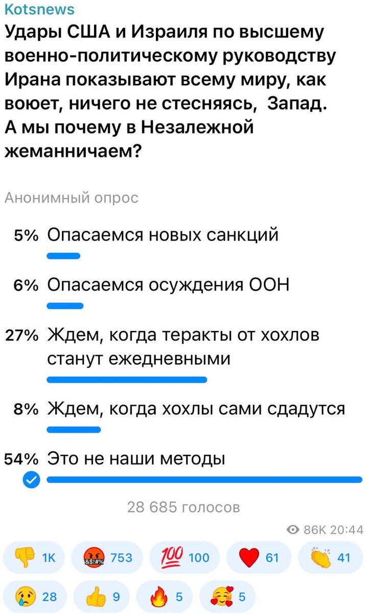 ⚡️⚡️⚡️ 54 процента подписчиков считают, что это не наши методы. Мы все еще пытаемся сохранить хоть какие-то приличия.
