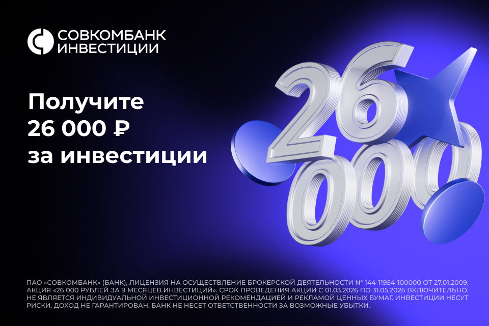 Нашла еще одну акцию от брокера на получение бонусов из воздуха. Суть - открыть до 31 мая 2026 года в Совкомбанке свой первый брокерский счет по ссылке. Как принять участие А далее нужно 9 месяцев подряд совершать покупки активов на установленную сумму и не снижать общий объем удерживаемых бумаг: Важно: Деньги будут начисляться на брокерский счет в течение 10 дней после окончания месяца. Например: вы открыли счет в марте и купили ценные бумаги на 1000₽ → 1000₽ поступят на счет до 10 апреля включительно