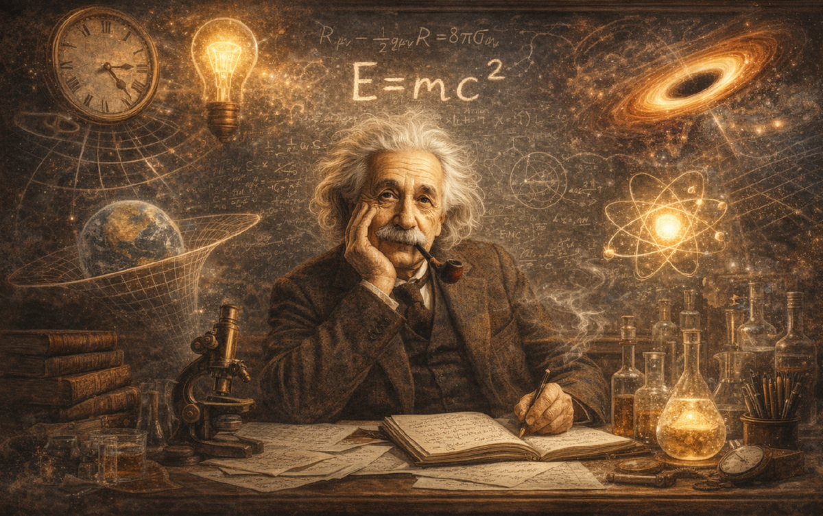 Гидра Эйнштейна — это ум, который работает как лазер. Классический маркер — 1905 год: четыре фундаментальные статьи за несколько месяцев, написанные человеком, который днём был патентным экспертом, а ночью думал о Вселенной.