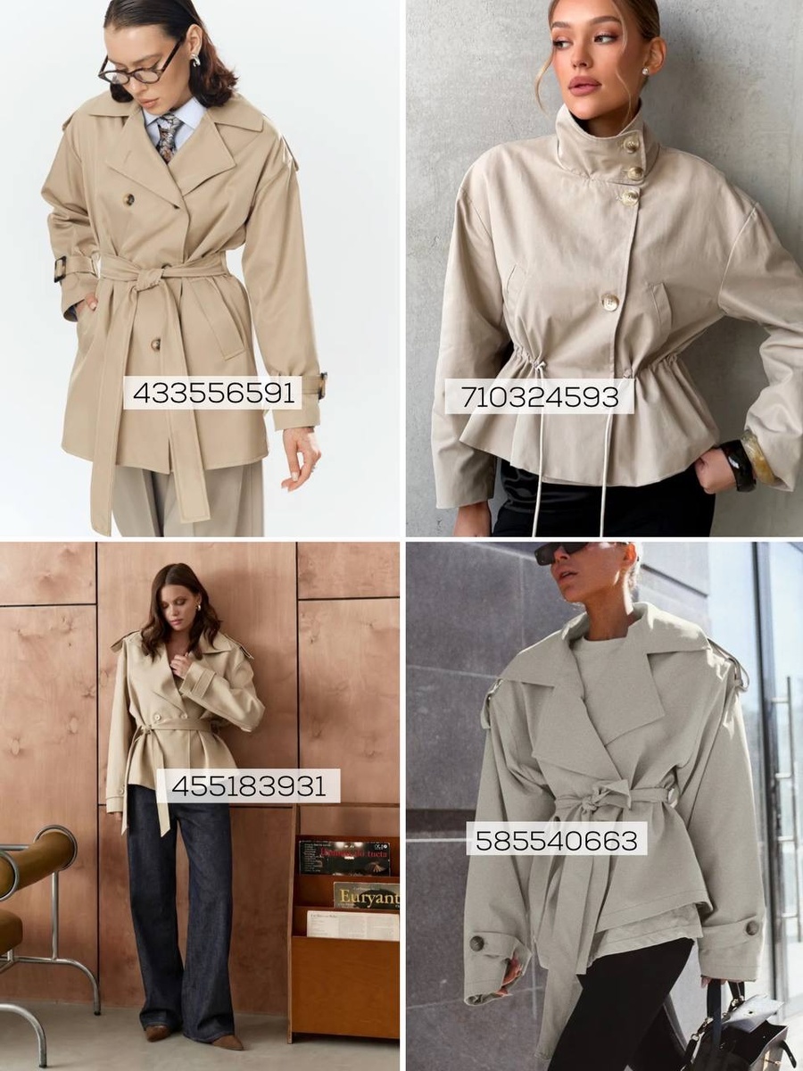 Есть вещи, которые мгновенно собирают образ в «дорого и спокойно»: короткий тренч, лаконичная куртка с поясом, кожаная фактура, правильный воротник-стойка. На фото — как раз такие находки.
