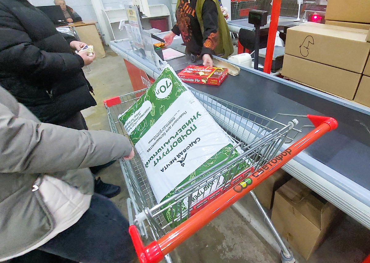 Почти каждый второй покупатель Светофора везет на кассу тележку с большой упаковкой почвогрунта. Он нужен и для рассады овощей, а также может использоваться и для пересадки комнатных цветов. Почвогрунт универсальный, содержит биогумус и природный биофунгицид. Объем 70л по цене 252 рубля.