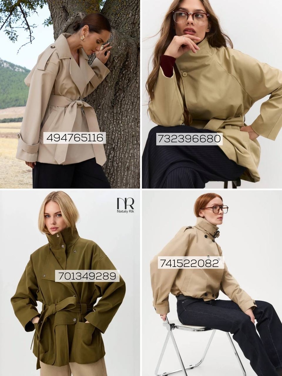Есть вещи, которые работают как волшебная кнопка: накинули — и в зеркале уже не «просто тепло», а осмысленный стиль. На фото как раз такие модели: короткие тренчи и куртки с поясом, стойкой, выразительными лацканами, правильным объёмом рукавов.