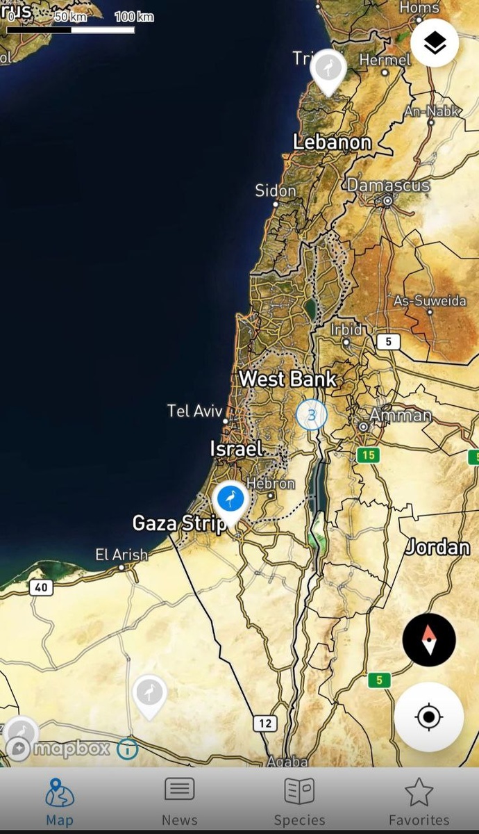 Аистов, белых и черных, - тоже. Сегодняшний скриншот из Израиля. Фигурка аиста на голубом кружке - положение немецкого аиста по имени Seppl. Чуть выше кружок с цифрой три - там еще два немецких аиста примерно в одном месте, судя по спутнику, ирригационные поля или что-то в этом роде. А цифра 3 потому, что один передатчик молчит уже продолжительное время. Фигурка аиста на сером фоне, увы, означает, что передатчик более не работает, скорее всего потому, что птица погибла. Во всяком случае, от двух аистов внизу картинки сигналы перестали приходить в апреле и августе 2025. Про каждую птицу можно получить более подробную информацию. Например, Сеппл родился в 2023 году в Германии и за свою не такую уж длинную жизнь он успел попутешествовать: 16 стран и 18811 км! На втором скриншоте - карта его странствий. А сейчас в месте боевых действий... Разве двуногих это когда-нибудь интересовало 😒