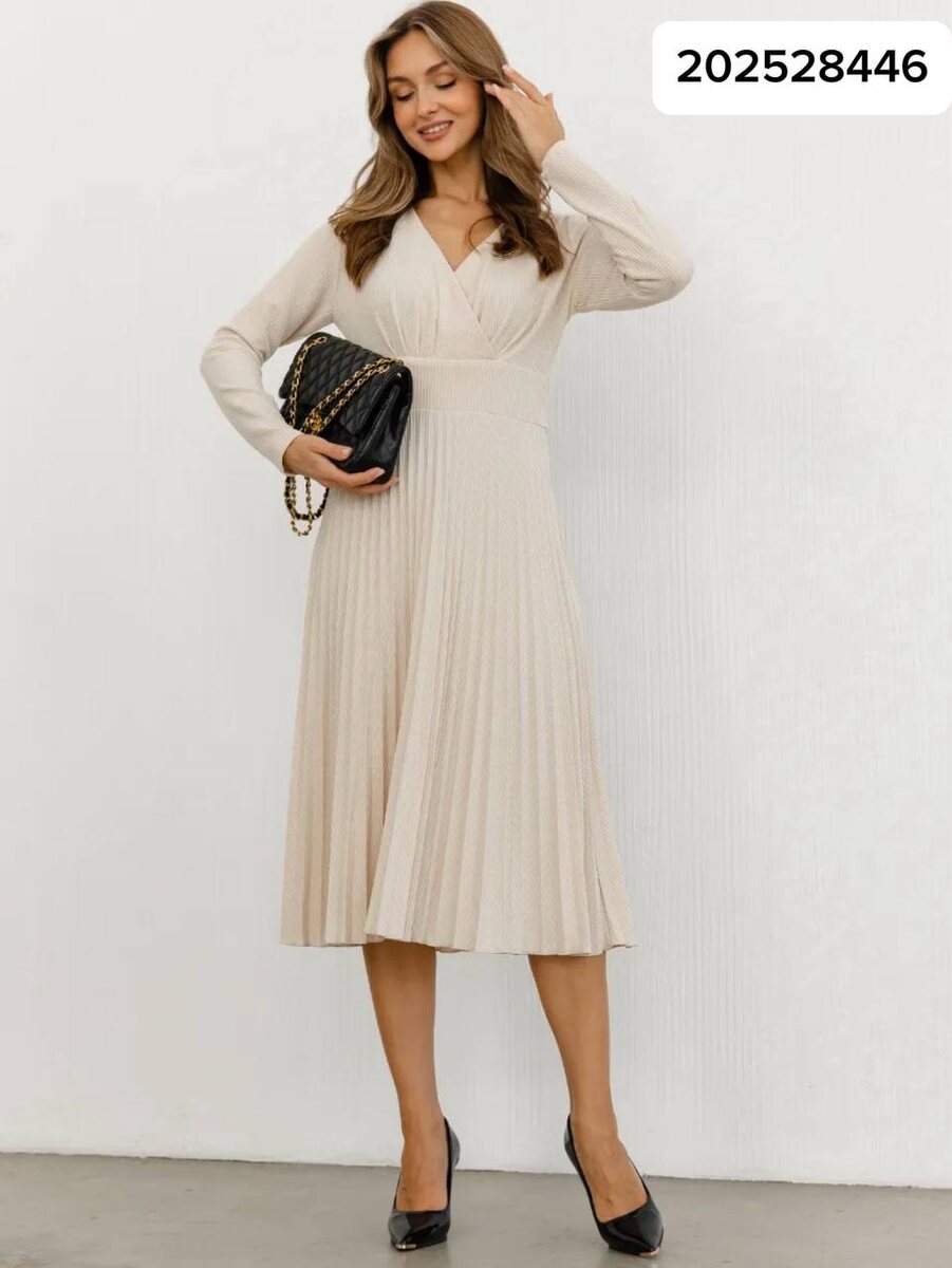 Артикул 202528446 — трикотажное платье плиссе на весну, бежевое