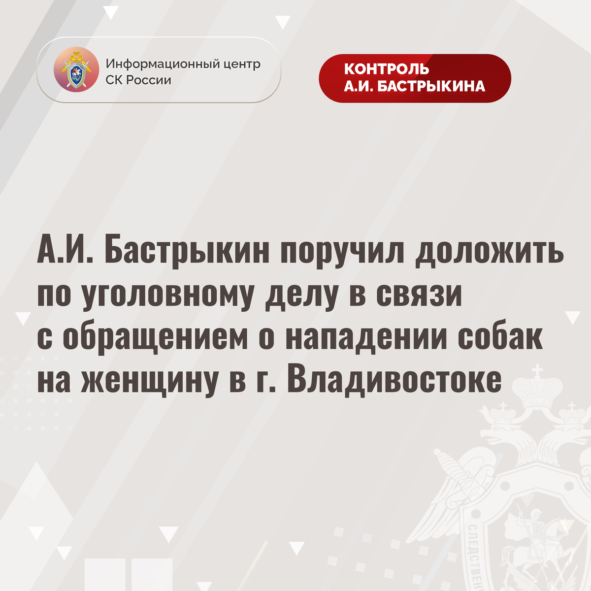 А.И. Бастрыкин поручил доложить по уголовному делу в связи с обращением о нападении собак на женщину в г. Владивостоке