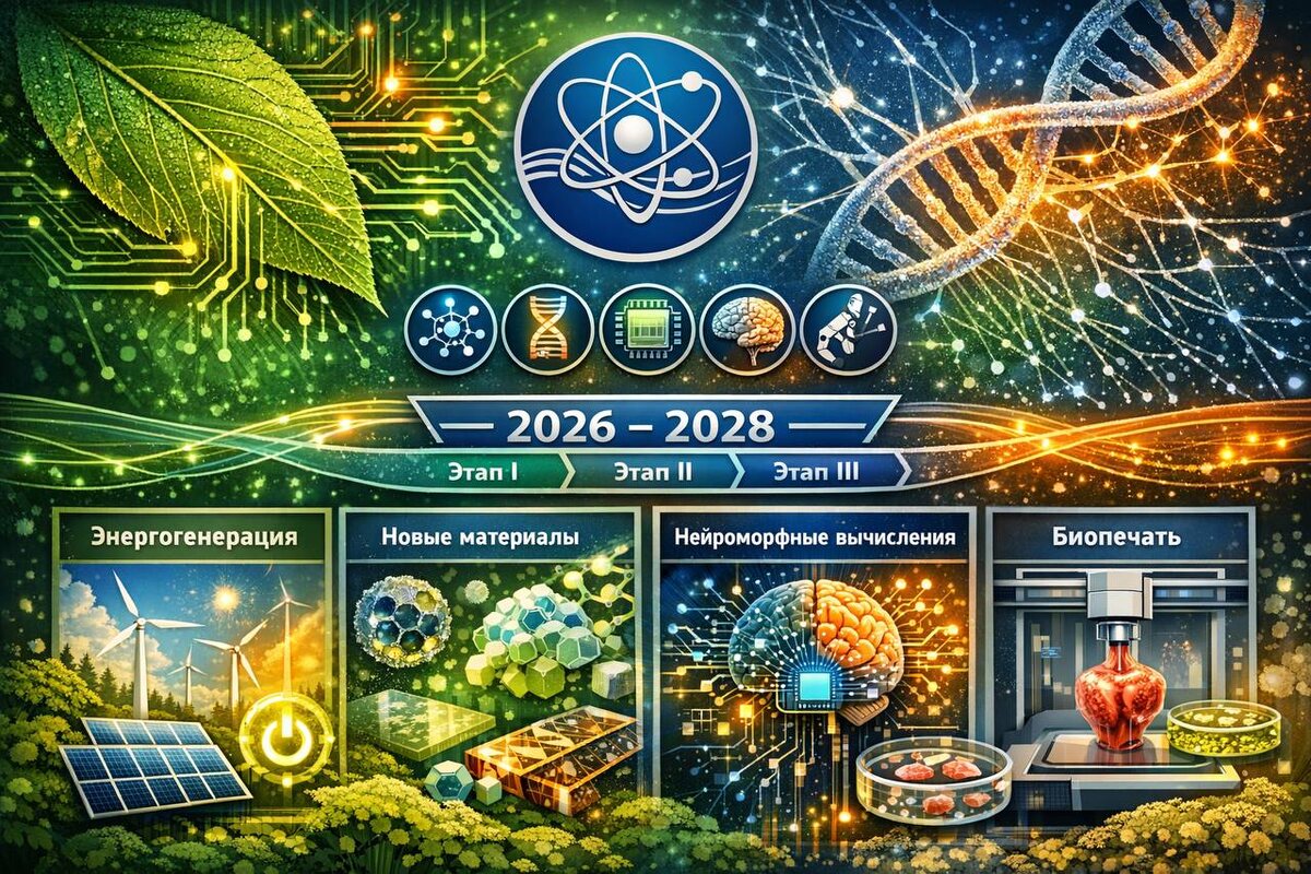 ❗️Правительство утвердило план мероприятий по развитию природоподобных технологий на 2026 – 2028 годы. ➡️Головной научной организацией, естественно, назначен Курчатовский институт. Не будет сюрпризом, что документ в основном писали в Курчатовском институте. 💬Дмитрий Чернышенко в рамках доклада по теме ППТ на совещании Михаила Мишустина с вице-премьерами подчеркнул: Трёхлетний план мероприятий по развитию природоподобных технологий. Его реализация тесно связана с национальным проектом «Технологическое обеспечение биоэкономики». ➡️Природоподобие частично раскрывается через конвергентные НБИКС-технологии. Одна из примечательных цитат: В целях эффективного использования природоподобных технологий необходима трансформация сознания человека. Это возможно только на базе соединения нано-, био-, информационных, когнитивных технологий с достижениями социогуманитарных наук и технологий. ➡️Традиционно уже помимо НБИКС для природоподных технологий подчеркивается важность ФНТП развития синхротр