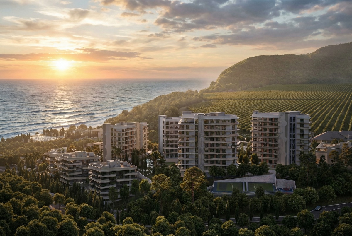 Представьте: вы в Судаке… Нет, не на экскурсии по Генуэзской крепости, а в бухте маленького капитана. Вокруг — горы, кипарисы, виноградники. Такое ощущение, что еще пара шагов — и на обочине начнётся дегустация – и это вполне рабочий вариант развития событий. Здесь строят апартаментный комплекс Сантерра. Мечта эта — у берега моря, до центра города 20 минут на авто, при этом 15 из них — сквозь живописные виноградники. Хотите итальянское настроение? Получите, распишитесь! Окрестности — практически Тоскана, только с крымской пропиской. Пляжи природные, климат мягкий, воздух — чище не придумаешь. Кстати, если вас спросят, на что похоже, ссылайтесь на Италию. Никто спорить не будет. Территория комплекса вытянутая — можно гулять долго и даже не повторяться. Корпуса высотой 7–11 этажей растянулись так, будто хотели обнять весь горизонт, но пока обнимают только вас и соседей. Всё оснащено по последнему слову: ресторан (чтобы не искать “где тут поесть”), бассейны, спа, спортзалы, детские площад